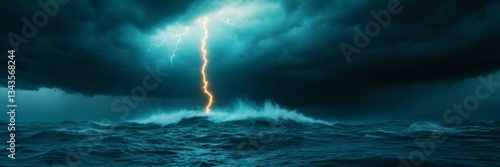 Thunderstorm over turbulent ocean, dramatic nature landscape, powerful lightning, intense weather phenomenon scene