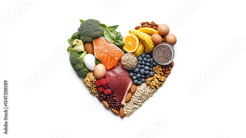 Zdrowa dieta. Zrównoważone odżywianie. Składniki odżywcze ułożone w serce