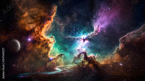 Vibrant Nebula and Starfield Space Illustration with Colorful Hues and Glowing Elements