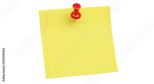 Yellow Sticky Note with Red Push Pin isolated on transparent png background