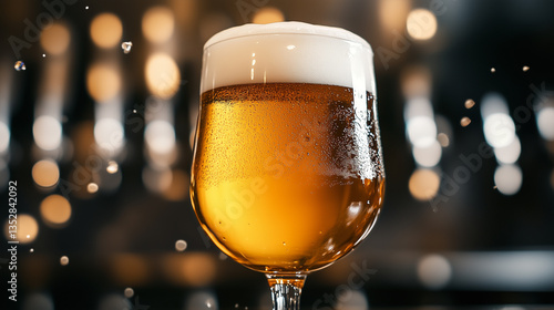 Szklanka jasnego piwa z pianą na żółtym tle