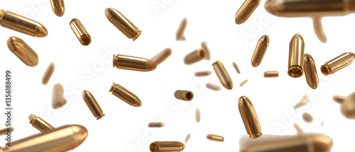 Falling bullets, flying shells isolated on a transparent background