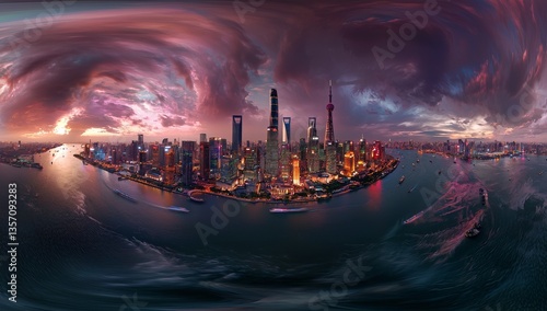 Dusk falls upon the metropolitan area, where luminous lights and famous landmarks abound