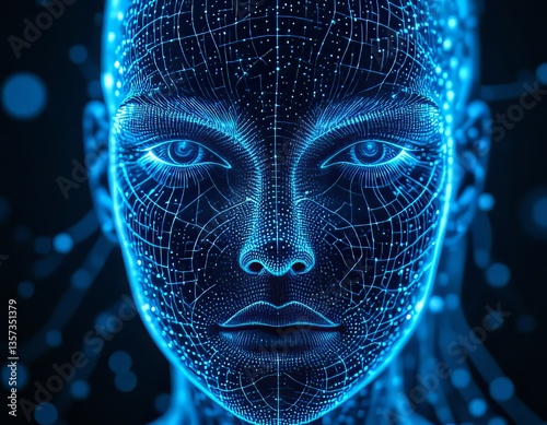 un rostro digital brillante, compuesto de puntos y líneas conectados