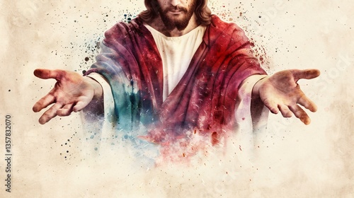 A poetic watercolor of Jesus' hands reaching out from a soft light, symbolizing grace and unconditional love.