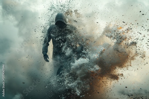 An imaginative scene of a person breaking through a brick wall, symbolizing perseverance, determination, and the ability to overcome obstacles in business