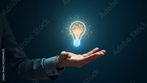 Flat Hand Showcasing Holographic Creativity Symbol for Growth Mindset