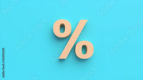Flat Vector Illustration of a Wooden Percentage Sign on a Blue Background - Perfect for Finance, Discounts, and Statistical Visuals in a Smart Business Tone