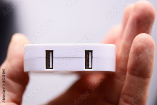A person holding a white device, suitable for tech-related illustrations and presentations.