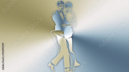 Kobieta i mężczyzna w tanecznym uścisku. Zarys kobiety i mężczyzny na tle gradientowych przejść kolorów.
