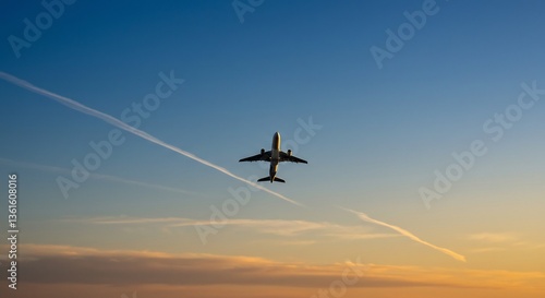 夕焼け空を滑るように飛ぶ飛行機 美しいシルエット