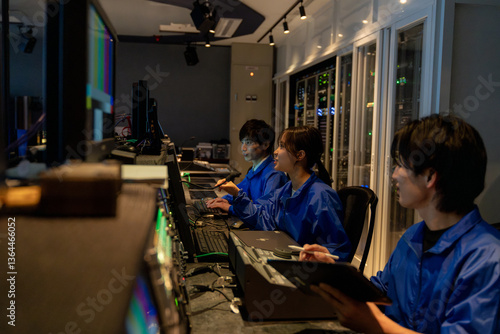 放送局の副調整室で働くスタッフ【撮影協力:スカパー東京メディアセンター】