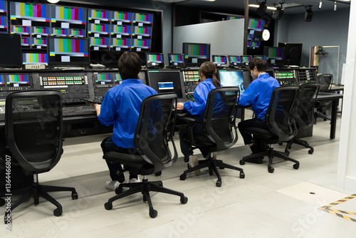 放送局の副調整室で働くスタッフ【撮影協力:スカパー東京メディアセンター】
