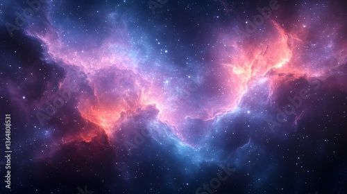 Colorful Nebula in Outer Space with Stars and Ethereal Clouds