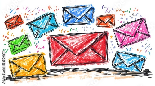 Whimsical handcrafted envelopes in vibrant hues conveying communication joy