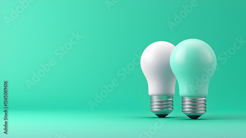 Two Light Bulbs on Mint Green Background