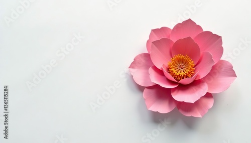 Isolated single paper flower peony made from crepe paper on white background, crepe paper, paper