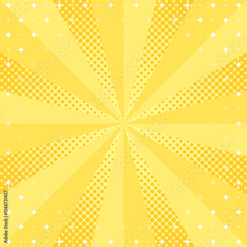 ドット柄入りのサンバーストの背景、光のエフェクト、スターバースト、光線、集中線、正方形サイズ