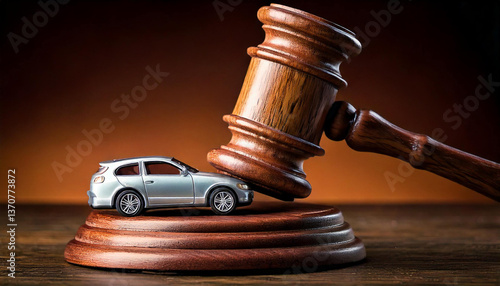 Justice and Automobiles: Symbolic Image of a Gavel Striking a Car