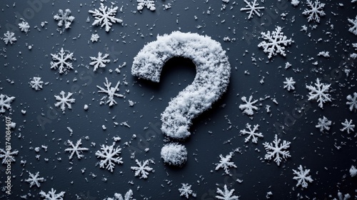 Snowflakes gather gently around a frosty question mark, capturing the mystery and unpredictability of the coming weather.