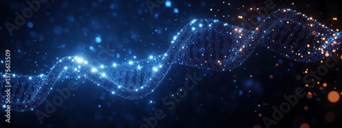 Glowing DNA Strand in Digital Space Representing Biotechnology and Genetic Research