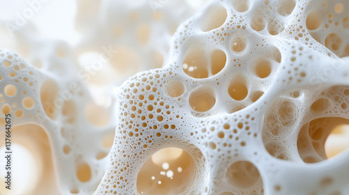Isolated background. Network, waves, cells of connections. Neurons and data flow 3D illustration. Abstract matter, bone porous