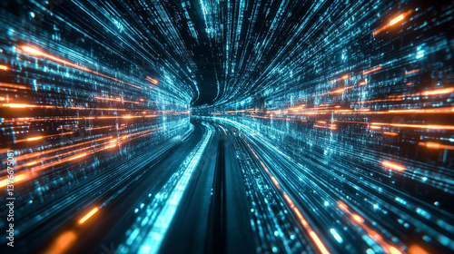 Bright signals transmit data quickly. Bundles of abstract fiber optic wires in neon light. Technology of high-speed Internet connection. Cyber concept 3d illustration