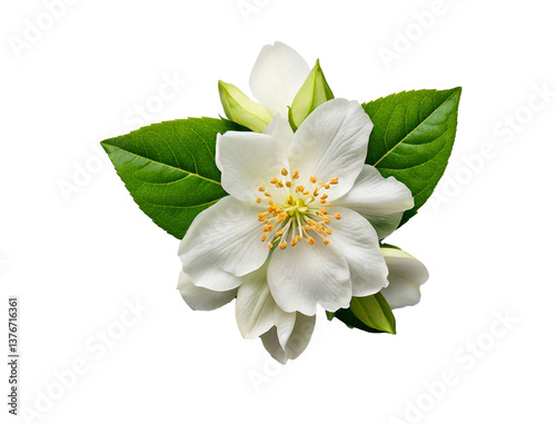 White jasmine flower isolated on white background.
