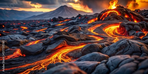 Molten Lava Flowing Through Dark Volcanic Rock - Dramatic Nature Photography