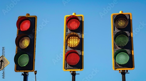 Traffic Lights Displaying Different Signals Against a Clear Blue Sky Backdrop
