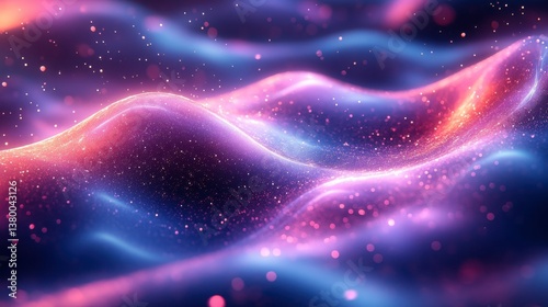 Abstract vibrant waves with glittering particles, flowing smoothly