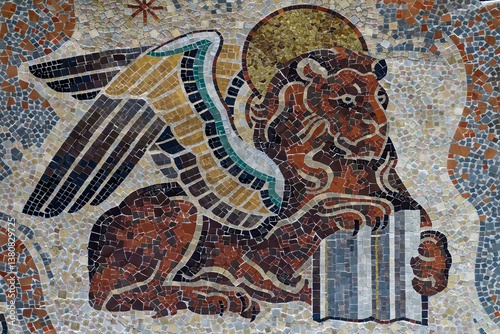 Mosaic of The tetramorph, symbol of the four evangelists with their attributes: the lion for Mark.