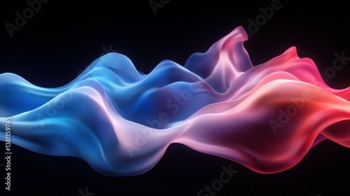 fond abstrait avec des vagues lumineuses en dégradé de bleu et rose sur fond noir espace négatif copyspace effet relief 3D