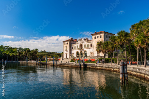 Miami, Florida - December 01, 2024: Vizcaya Museum and Gardens. Villa Vizcaya historical building museum. Historical landmark of Florida. Vizcaya museum waterfront architecture. Touristic place