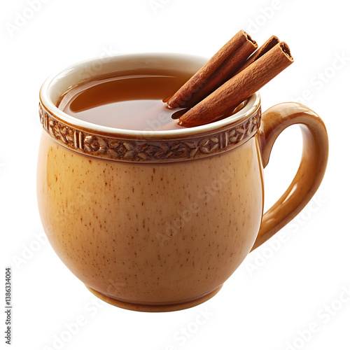 A Mug of Spiced Apple Cider Garnished with Cinnamon Isolated on Transparent Background