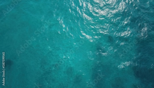 Aerial shot of blue ocean water surface, gentle waves, top view texture. Turquoise sea background. Travel, vacation concept. Summer holidays at seaside beach. Tropical paradise relax.