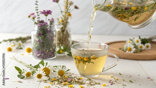 Refreshing herbal infusion made with dried flowers and herbs in a serene setting
