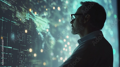 CEO Observing Digital Dashboard with Advanced Data Visualization