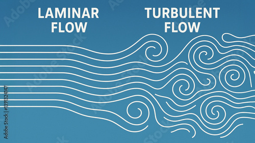 Laminar flow and turbulent flow illustrate principles of air movement duct engineering, showcasing contrast between smooth and chaotic patterns
