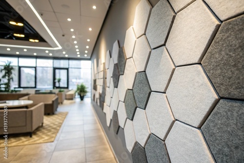 Hexagon felt acoustic panels, modern interior design, soundproofing decor, geometric wall decoration, stylish felt panels for home and a shallow depth of field - generated by ai