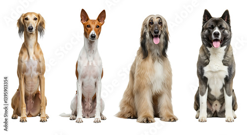 Four Dogs Sitting Together Isolated on White Background