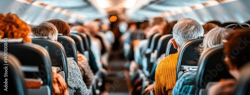 Passengers seated inside an airplane during a domestic flight, enjoying their journey together in close quarters on a sunny afternoon