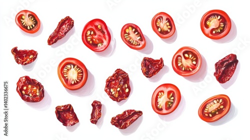 Scattered Sundried Tomatoes on White Background for Food Photography Projects illustration