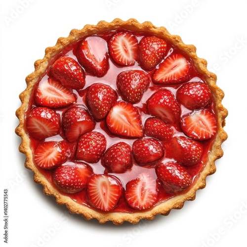 A freshly baked strawberry tart with a buttery crust, sweet strawberry filling, and fresh sliced strawberries on top