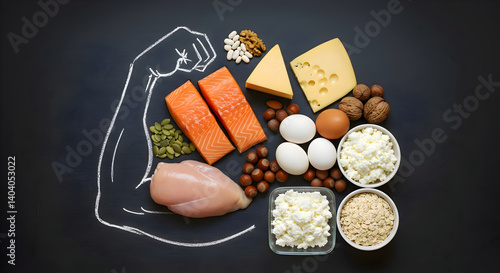 A strong arm drawn in chalk on a blackboard demonstrating the strength of protein in the human body