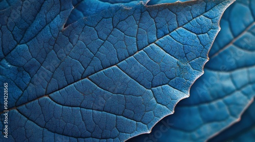 Macro shot of a vibrant blue leaf highlighting its intricate vein structure