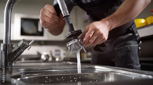 Plumber fixing a clogged drain in a kitchen. Featuring skill and technical expertise
