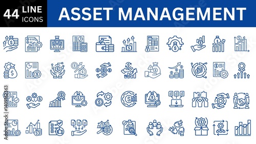 Asset management editable icon set. Editable stroke. Vector illustration.