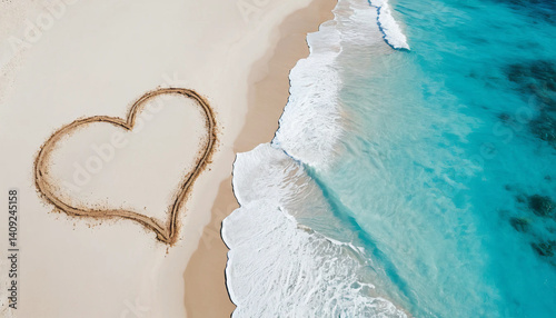 Serce narysowane na piasku na plaży nad morzem