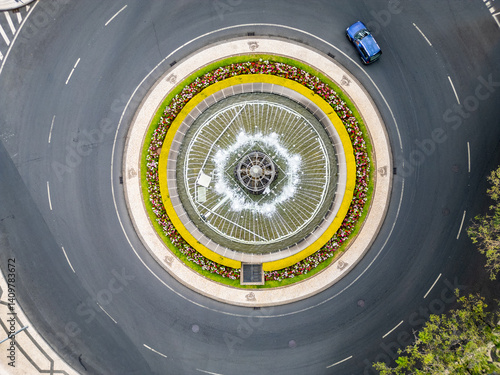 Rotunda do Infante Fountain on roundabout in Funchal city, capital of Madeira Island, Portugal
